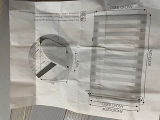 Cortina para barra 3,48 ancho, estiradas, pero se ponen más juntas por lo que el ancho es menor 2,47: largo Franjas verticales lila y negro transparente. Tela de buena calidad, comprada en casa cortinas En buen estado