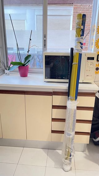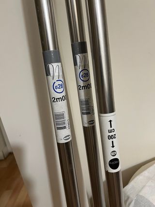 Se venden tres barras de cortinas D28 ancho 2 metros (10€ unidad) un juego termínales (6€) y varios soportes pared (7€ el juego)
