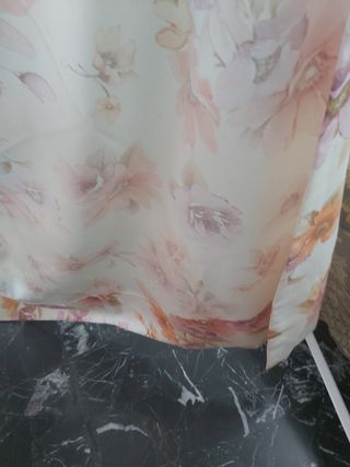Vendo cortina sin estrenar. Blanca con decorados y anillas de plástico
