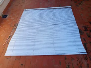 Cortina de lamas de metal y plástico, ideal para ventanas. - Color gris plateado. - Mecanismo de lamas orientables.