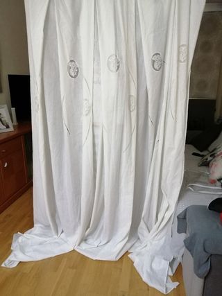 Dos cortinas con 8 anillos. Miden 130 cm de ancho x 175 cm de largo