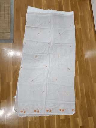 Preciosa pareja de cortinas blancas de tela para ventana oscilobatiente,también cortinas inferior fija- Se venden juntas. - Son ligeras y delicadas. - Están en perfecto estado.Se regalan las barras