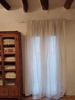 Dos piezas de cortinas translúcidas de ciento cuarenta por 137 cada una la medida de altura 137 es el total incluyendo las anillas