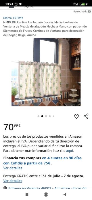 Preciosa cortina para cocina, en tonos beige y naranja. Ideal para dar un toque de calidez a tu cocina. - Diseño de cuadrícula. - Tiene un pequeño ribete decorativo en la parte inferior.