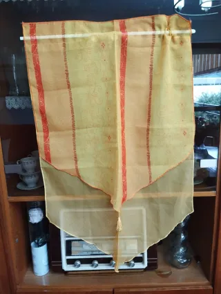 2 retales de tela para cortina. Antiguo. 1 pieza de 2 metros 17 cm ancho x 2 metros 60 cm largo y otra pieza de 87 cm de ancho x 2 metros 60 cm largo . Recogida por parte del comprador.