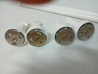 Terminales de cortina de metal, marca UNICASA. Son dos piezas de color blanco. Se ven elegantes y en buen estado. - Diámetro de 20 mm. - Ideales para barras de cortina.