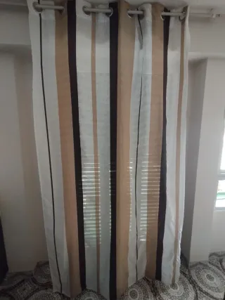 Nuevo a estrenar. Cortina separada la tela de los ollaos de la cortina, se une por velcro, por la tanto la altura se puede regular. Ancho 140, altura máxima 255 cm. Tela translúcida en marrón. Marca Destiny. Tengo disponible otro unidad en marrón y otra en blanco.