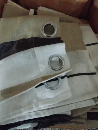 Cortina con ollaos de la firma Vipalia. Cortinas lisas con tejido loneta para tu salon o dormitorio. Tamaño 140 cm ancho x 255 cm alto. Precio por unidad, hay 4 disponibles, con posibilidad de hacer precio conjunto. Precio original en tienda Leroy Merlin 60'95 eu.