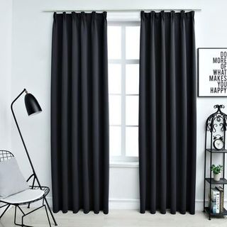 Cortinas opacas con ganchos 2 piezas negro 140x245