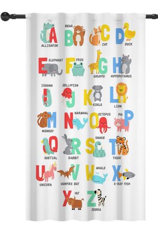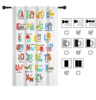 117x183cm Cortinas Alfabeto ABC para Niños, Animales Coloridos Lindos Aprendizaje Divertido Educación Cortinas Translúcidas con Bolsillo para Barra para Guardería Aula, 1 Panel