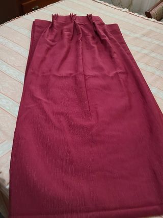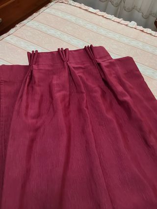 Cortinas de tela (2), en un bonito color granate, gorditas hechas por profesional, poco uso. Cada cortina 2.30 ancho. Y 2.50 alto - Diseño con pliegues. - Textura sutil.