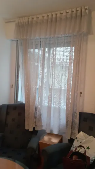 Cortina blanca de tela, en perfecto estado. - Diseño elegante y sencillo. - Aporta luminosidad a la estancia. Están en perfectísimo estado, en la foto he puesto una estirada pero puedes poner las dos dispongo de otra más y ponerlas fruncidas, son de muy buena calidad. Cada una 6 euros, cada cortina, dispongo de dos iguales, las dos serían 12 euros, la barra de madera no entra en el precio. Ancho 122 cm,largo 1,70 cm y dobladillo por dentro que no se ve 20 cm,se puede bajar.