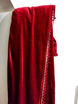 Elegante cortina con un diseño inspirado en el estilo marroquí. Sus colores y texturas añaden un toque sofisticado a cualquier espacio. - Diseño intrincado con motivos florales. - Acabado con flecos decorativos en los bordes.