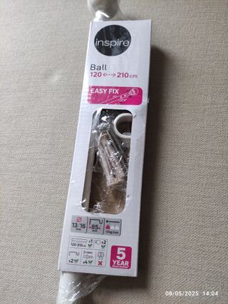 Barra para cortina Inspire, color negro, de metal. Es extensible, mide de 120 a 210 cm. Incluye 2 terminales de bola. Se encuentra en buen estado, lista para usar.