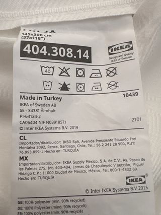 Cortina blanca de la marca IKEA. - Fabricada en poliéster. - Medidas: 140x305 cm.