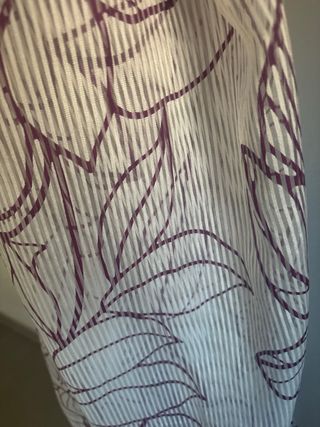 Preciosa cortina de tela con un diseño elegante y sutil. Es ligera y tiene un plisado delicado. - Diseño con estampado floral abstracto. - Perfecta para dar un toque de estilo a cualquier espacio.