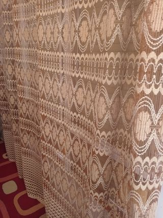 Preciosa cortinas de tela, color beige marron - Suaves y ligeras. - Delicadas y elegantes. - Perfectas para dejar pasar la luz. Son cinco piezas ,dos de 246 de alto i por 200 cm de ancho y tres de 245 de alto por 235 de ancho Sirven para dos ventanas o balcones, uno de 180 cm i la otra 260 cm Montaje por aros incorporados a la tela Barras de colgar de regalo