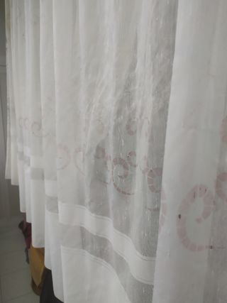 Vendo esta cortina en tono blanco con dibujos en marrón claro. Precio 25€