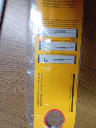par de barras extensibles para cortinas en ventanas, toallero, etc. no usadas dado que quedaban muy grandes. embalaje abierto en 1 esquina. medidas en la fotografía