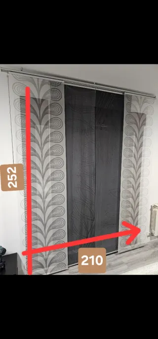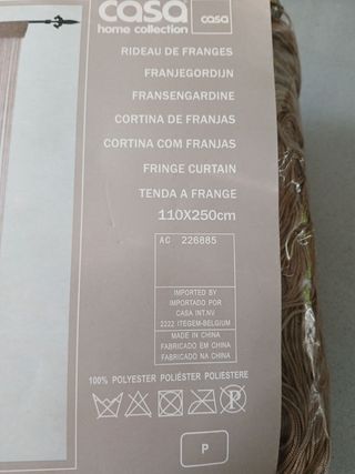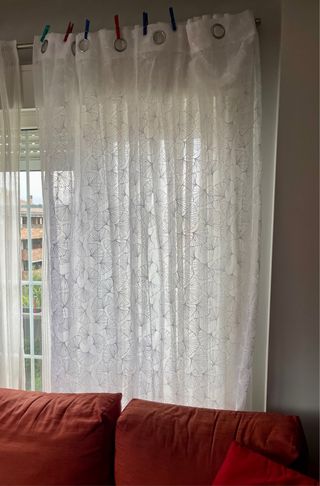 2 hojas de 1,80 (parte del vuelo)x 2,45 (largo) con contrapeso en los bajos Cinta para ganchos