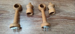 2 embellecedores para extremos de cortina. 2 sujetabarras. Material madera. Para barra de máximo 2'7 cm.