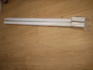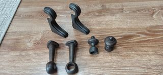 2 soportes de extremos 2 soportes intermedios y 2 embellecedores.Material plástico duro. Las medidas se ven en las fotos. Para una barra de maximo 2'7 cm.
