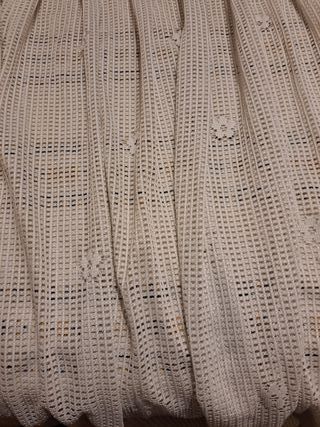 Delantera, cortina, camino de mesa, de ganchillo antigua, blanca. Tiene más de 100 años y está perfecta. Tiene unos pequeños hilos sueltos, una cosa mínima. 235x82cm. por la parte de abajo 3m.