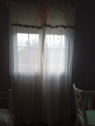 Cortinas de tela en color blanco, baratas porque me están ocupando espacio. Son muy bonitas, tenía cuatro iguales pero dos me las quedo yo. Medidas de ancho para una puerta o ventana de 1,20 m aprox y altura 2,23 m aprox. Tienen dobladillo por si tienes que sacarle. Llevan su ganchito de metal, solo para lavarlas y colgar. SOLO RECOJER.