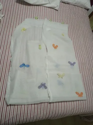 Cortinas de gasa con un bonito diseño de libélulas, perfectas para una habitación infantil. Añaden un toque de color y fantasía. Una de ellas tiene dos pequeños rotos. - Diseño con libélulas de colores. - Tejido ligero y vaporoso.