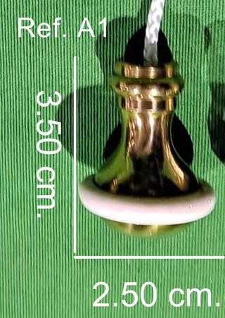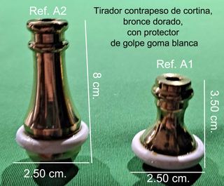 Tirador de cortina, bronce dorado, con protector de golpe goma blanca, (Rf. A1, 1´50 €). (Ref. A2, 2 €) Artículo nuevo de fábrica. Rebajado, por liquidación cierre negocio) (“Negocio cerrado.” Solo hacemos envíos, por Wallapop.)