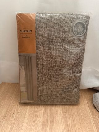 Cortinas de tela en color beige con un diseño sutil.150x265 - Textura ligera y translúcida. - Aportan un toque de elegancia a cualquier estancia. - Ideales para crear un ambiente acogedor. -Es una sola pieza