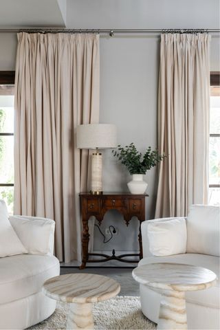 Cortinas de lino en un suave tono beige. Añaden un toque de elegancia y calidez a cualquier estancia. - Confección de alta calidad. - Textura natural del lino. Tengo 3 juegos de cortinas en venta: Cada panel mide 2,65 x 6,5m