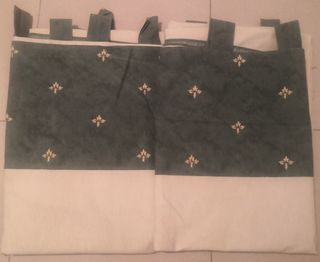 Juego de dos cortinas con un diseño elegante. - Parte superior con trabillas para colgar. - Parte central en color blanco - Estampado de motivos florales dorados sobre fondo verde. Medidas 196,5x135