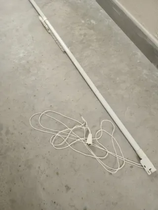 - Riel fácil de instalar. - Medida extensible de 1,65 m a 2,80 m. - Mecanismo para abrir y cerrar con cordón para accionamiento.