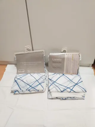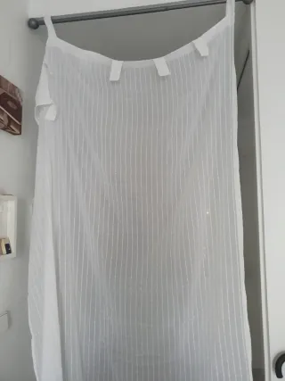 Cortinas elegantes con un diseño de rayas verticales sutiles. - Combinación de color Blanco - Confeccionadas en tela. - Tengo dos hojas para que pongas una a cada lado por si quieres. (5€ cada una) - Se venden juntas o separadas. - Están súper blancas , no se han usado, solo están un poco arrugadas de estar guardadas. - Se compraron en el Hipercor como pone en la etiqueta.