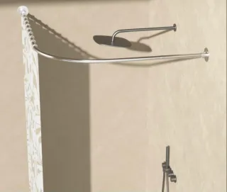 Barra extensible para cortina de ducha en esquina. Se ajusta fácilmente a diferentes espacios. Regalo 3 cortinas - Medidas: 70-95 cm de largo. - Material: Metal.