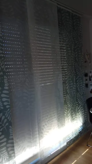 Estores japoneses de la marca IKEA. Son de tela de color blanco y verde Riel de 2m 4 pistas 4 estores 2 blanco 2 verde 60 cm por estor 2:20 de alto 12 euros unidad con todo lo necesario para instalar - Diseño moderno y elegante. - Fáciles de instalar.