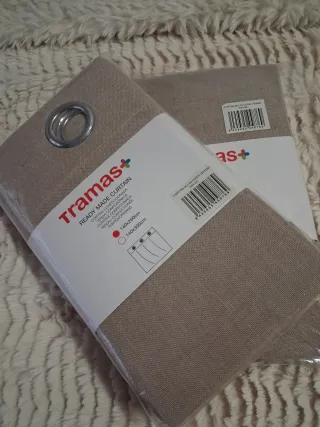 Cortinas nuevas a estrenar de la marca Tramas+. - Medidas disponibles: 140x260cm y 140x300cm. - Color: Arena (marrón claro). - Confeccionadas con ojales.