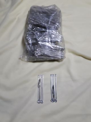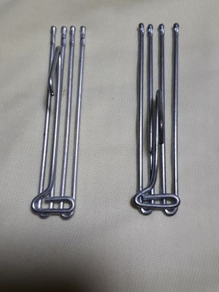 Se venden 100 ganchos para cortinas plisadas. Son de metal y color plateado. Están en buen estado. - Ideales para sujetar cortinas. - Fáciles de instalar. - Diseño sencillo y elegante.