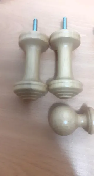 Conjunto de seis accesorios de madera para barra de cortinas. Estos elementos decorativos añaden un toque clásico a tu hogar. 2 sujeciones para barra 2 remates para barra y 2 sujeciones para recoger las cortinas lateralmente - Fabricados en madera. - Diseño torneado. - Incluyen tornillos para su fijación.