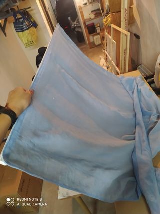 Preciosa cortina estore de tela, color azul. Ideal para dar un toque elegante a cualquier ventana. - Estilo paquete, con ondas suaves y delicadas. - Incluye galería superior. Lista para colgar. - 1 estore 15 € - 2 estores 25 €