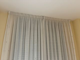 Cortina beige y blanca de tela