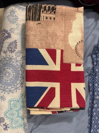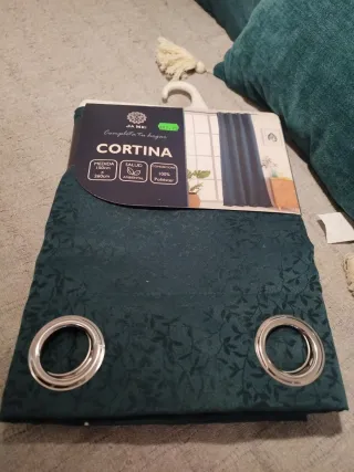 2 patas de cortinas confeccionadas en tela verde estampada del mismo color de 2.91 cm. de ancho, otras 2 iguales de 1.91 cm. de ancho x 2.77 cm.de largo. Regalo 1 volante de 2.72 cm.de ancho y otro igual de 1.96 cm.de ancho, por 58 cm.de alto. 4 agarradores. Todo en buen estado,tan solo una pata verde tiene dos marras (poco apreciable) algunas de las cintas si habría que cambiarla. Los visillos no los tengo. El precio es por metro de cortina. Precio negociable al venderse también por separado.