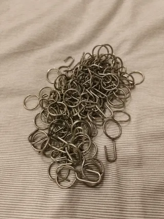 Conjunto de anillas metálicas para cortinas. - Color plateado. - Material metálico. Sin marca. 20 anillas. Diámetro Exterior 3,5cm; Interior 2,7cm
