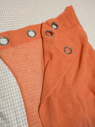 Visillo en color naranja con un diseño moderno y elegante. Ideal para añadir un toque de color a cualquier estancia. - Medidas: 140 cm de ancho x 235 cm de alto. - Incorpora ojales metálicos para una fácil instalación. - Tejido ligero y con una sutil textura cuadriculada.