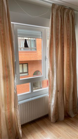 cortinas hechas en buen estado Medidas: 2,40 ancho x 2,60 alto ( 2 iguales) 0,46 ancho x 2,60 alto 0,41 ancho x 2,60 alto se pueden usar tal cual si te encajan las medidas, o que las adaptes a tus medidas o como retales precio a negociar si no quieres todo abstenerse gente ni interesada