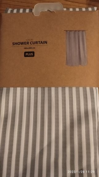Cortina de baño o ducha. Medida de 1'80 x 2 m. Incluye 12 argollas. El producto está sin abrir.