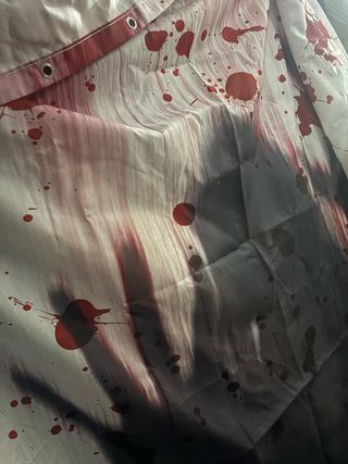 Cortina de ducha con diseño temático de Halloween, simulando manchas de sangre. Añade un toque espeluznante a tu baño. - Diseño de manchas de sangre. - Material de poliéster.
