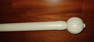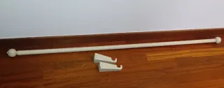Barra para cortina de 155 cm de longitud. Incluye dos soportes de madera para su instalación. - Barra de metal. - Color beige.
