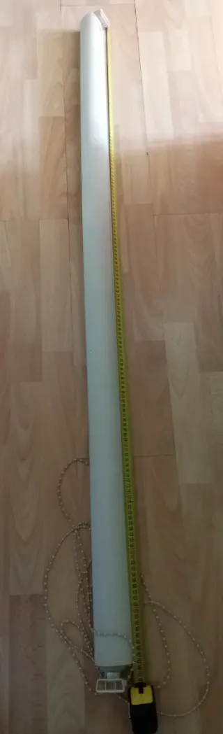 Estor de color beige con una longitud de 1,50 metros. Incluye cadena para su manejo. - Medida: 1,50 metros de largo. - Color: Beige. - Mecanismo de cadena. - Solo es el estor. No incluye los anclajes del mismo a l pared.